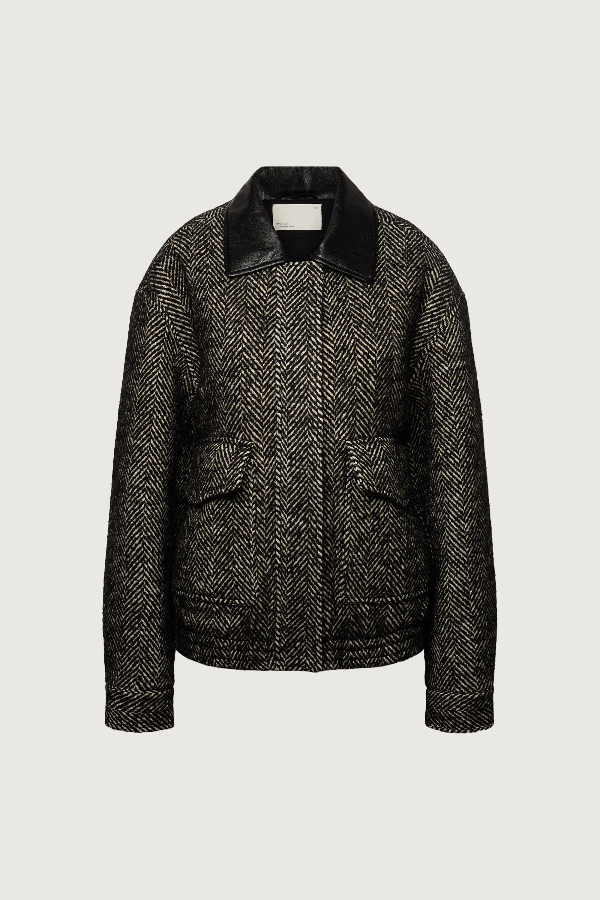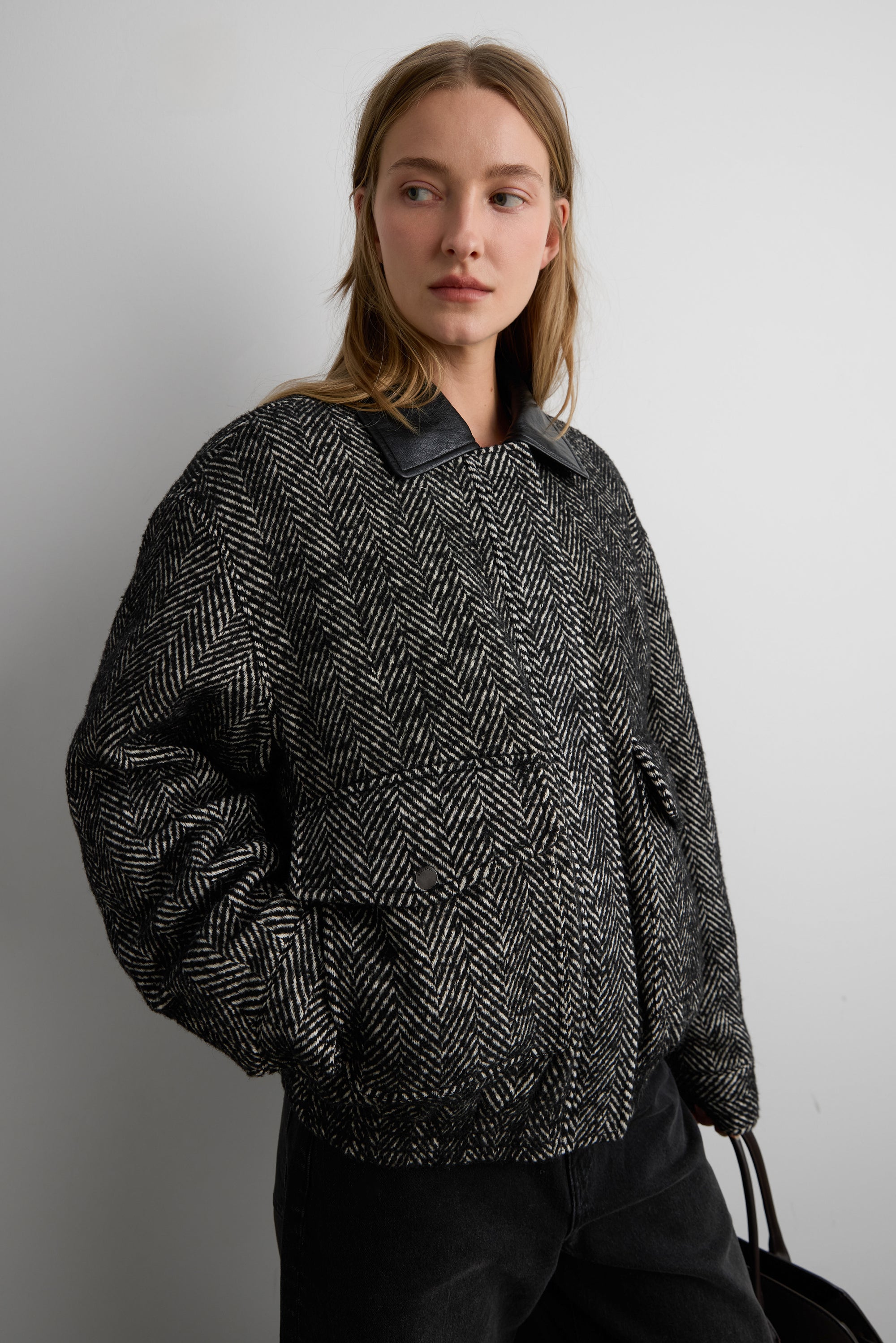 WOOL BLEND HERRINGBONE BOMBER JACKET